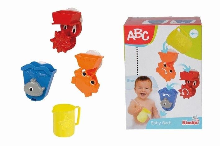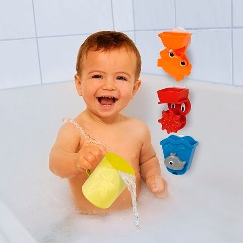 Sada 3 různých aktivit pro hraní ve vaně. Každá s přísavkou. Hrneček součástí. Celkem obsahuje 4 ks.