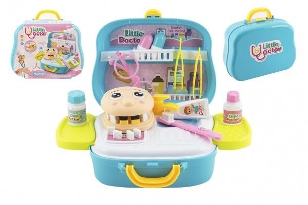 Zahraj si na malého pana zubaře. Praktický zubařský kufřík obsahuje všechno potřebné náčiní každého zubaře. Otevři si malou zubní ordinaci. Sada obsahuje 18 ks. Sada pomáhá dětem připravit se na návštěvu pana zubaře a nechat si ošetřit své vlastní zoubky.