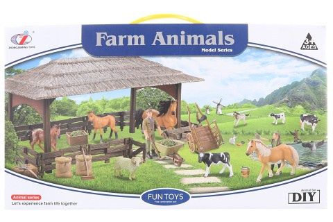 Sada domácích zvířátek z farmy bude pro vás a vaše děti skvělým zážitkem, který jim poskytne informace o životě na farmě a funguje na trénování myšlenkových schopností vašich dětí a zlepšování jejich základních znalostí. sada obsahuje 5 zvířátek, 2 panáčky, pracovní nástroje a další doplňky (celkem 19 ks). Rozměr balení cca 51 x 29,5 x 8,5 cm. Věk 3+