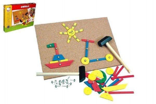 Sada dřevěná - podložka korková s kladívkem 243ks v krabici 26x18,5x3cm