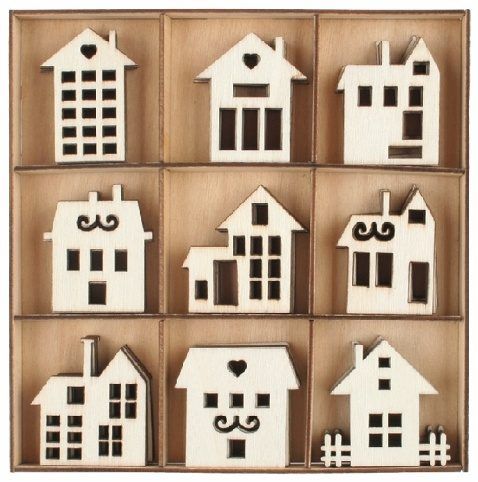 Sada dřevěných dekorací Domy 3,5 x 3 x 0,2 cm, 54 ks