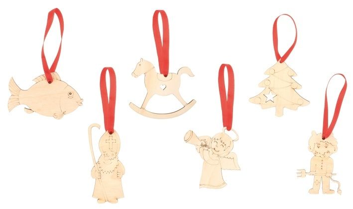 Sada dřevěných závěsných dekorací 6 ks s českými motivy