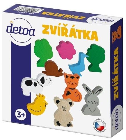 Sada obsbahuje 10ks dřevěných profilových tvarů zvířátek v různých velikostech. Některá jsou ponechána v přírodním vzhledu, jiná jsou obarvena a potištěna.. Figurky slouží ke hře, rovíjení představivosti, lze je kompbinovat s jinými výrobky zn. DETOA…Nevhodné pro děti do 3 let.