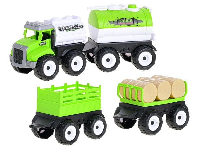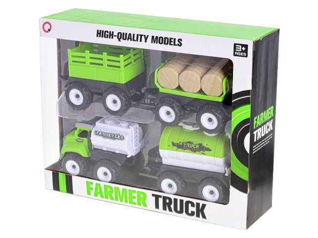 Sada farmářské auto 11-12cm na setrvačník se třemi přívěsy 3druhy v krabičce