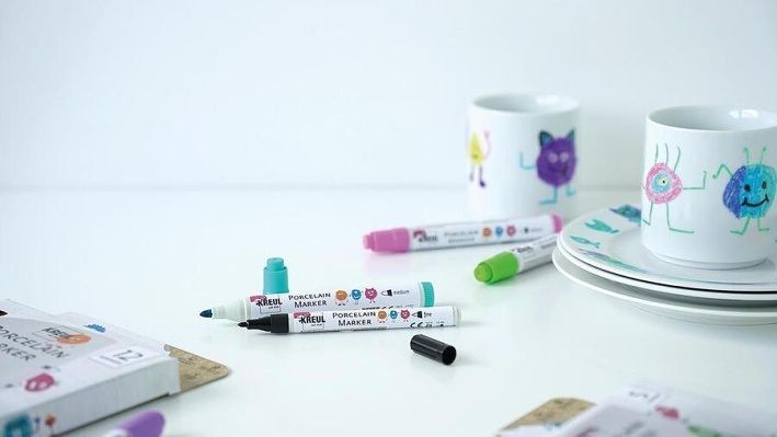 14 barevných odstínů se štětcovitou špičkou, která drží svůj tvar pro malování a zdobení skla, porcelánu a glazované keramiky