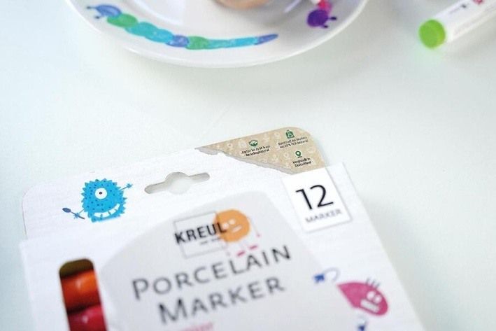 S touto sadou můžou děti od 6 let zdobit šálky, talíře, hrnečky, misky a další věci z porcelánu. Velká sada obsahuje fixy ve 12 barvách. Snadno se používají, fungují bez nutnosti popisovač nejprve protřepat nebo napumpovat. Složení barev je veganské a bylo dermatologicky testováno.
