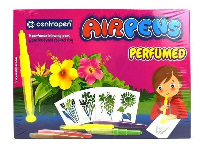 Sada foukacích fixů s vůní, 5 ks + šablony, papíry