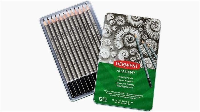 Balení: 12ks (tvrdosti HB, H, 2H, 3H, 4H, 5H, B, 2B, 3B, 4B, 5B, 6B) v plechové krabičce