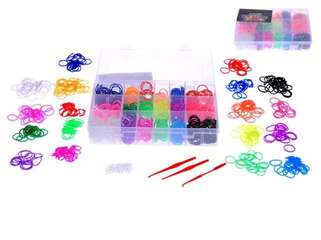 Sada gumiček 1440ks pro vyrábění náramků s doplňky v plastové krabičce