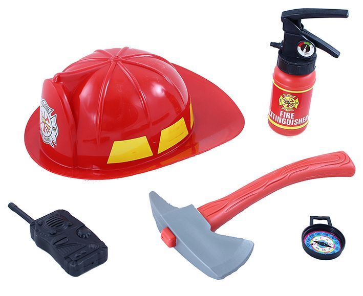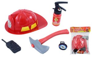 Praktická sada pro všechny malé hasiče! Tento senzační set obsahuje helmu s odznakem a reflexními symboly, hasičskou sekeru, hasicí přístroj, vysílačku a kompas. Vše je vyrobeno z PVC. Do hasicího přístroje lze napustit vodu a stříkat. Zažij skutečnou zác