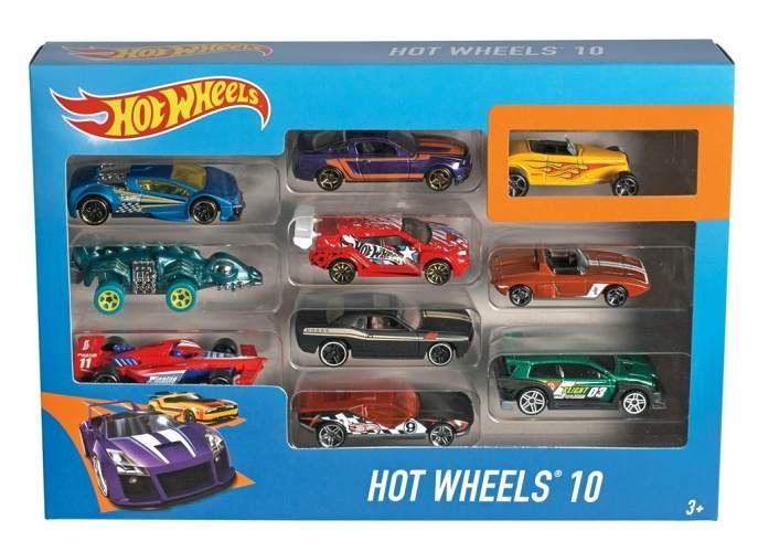 Sada Hot wheels autíčka 10 ks. Jedno autíčko je vždy exluzivní a není ho možné sehnat jinak než v této kolekci. Realistický a autentický design, měřítko 1:64.