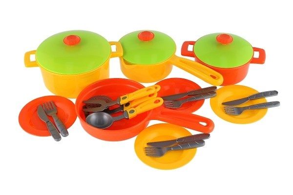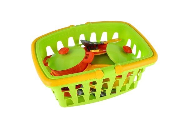 Se sadou hrnců, talířů a příborů si mohou malí kuchaři a kuchařky vařit co se jim zlíbí. Vše mohou schovat do nákupního košíku.