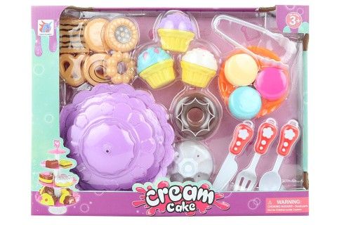 Sada jídla s servírovacím talířem. Balení obsahuje 3 patrový servírovací talíř, příbor, talířek, kleště, dortíky, sušenky, makronky a další doplňky. Rozměry balení cca 37,5 x 28 x 6 cm. Věk 3+