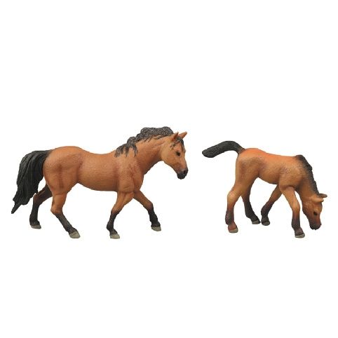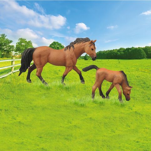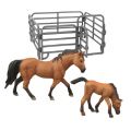 Figurka koně a hříběte v hnědé barvě s černou hřívou. Součástí balení také ohrada. Ideální pro milovníky koní. Tato hračka je součástí kolekce Moje malá farma.