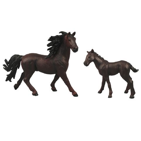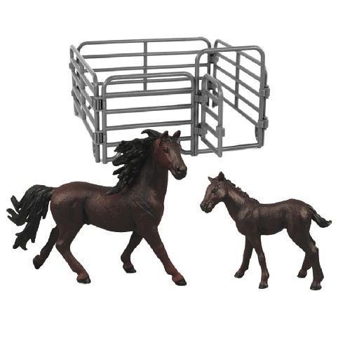 Figurka koně a hříběte v tmavě hnědé barvě s černou hřívou. Součástí balení také ohrada. Ideální pro milovníky koní. Tato hračka je součástí kolekce Moje malá farma.