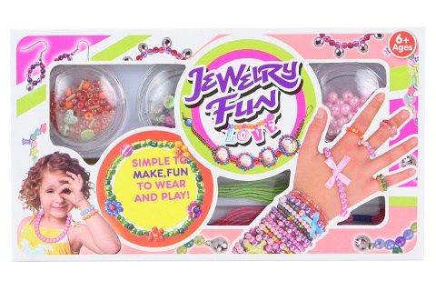 Sada korálků obsahuje 3 druhy korálků, 2 bavlnky k navlékání a další doplňky. Rozměr balení cca 23 x 13 x 2,5 cm. Věk 6+