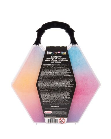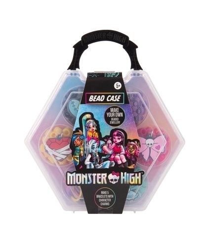 Sada korálků na výrobu šperků Monster High v praktickém kufříku. Z této sady můžeš vyrobit až 5 náramků nebo náhrdelní doplněných o přívěsek v licenci Monster High. Balení obsahuje 5 druhů a barev korálků, šňůrky, zapínání a 5 přívěsků Moster High.