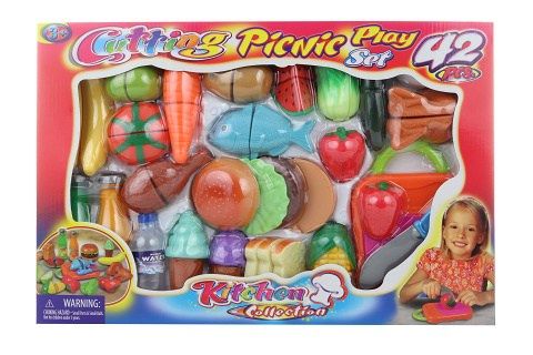 Velká sada jídla a potravin. Obsahuje velké množství potravin, ovoce, zeleniny a jídla, které lze krájet. Materiál plast. Rozměry balení cca 45,5 x 30,5 x 5 cm. Věk 3+