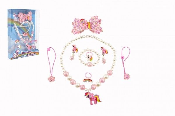 Sada krásy jednorožec náušnice,náhrdelník,sponky do vlasů, prstýnky 2ks plast v krabičce 1