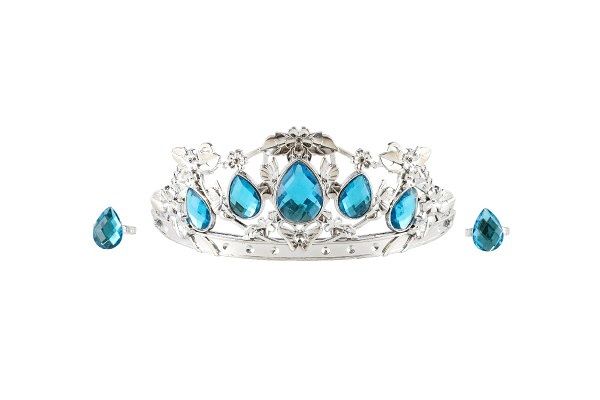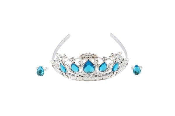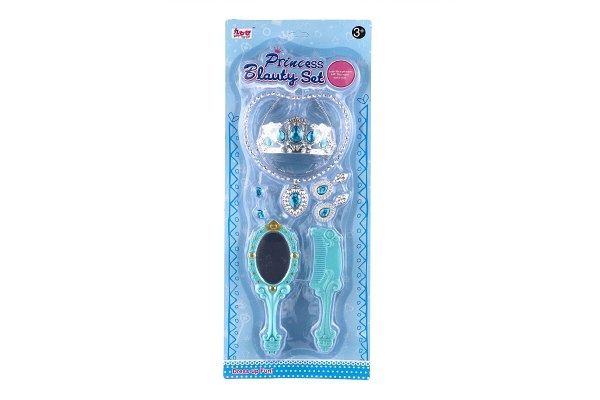 Sada krásy plast korunka, náhrdelník, naušnice, prsten 2ks, zrcátko, hřeben na kartě 22x54