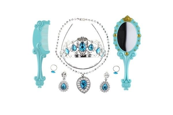 Chcete se stát princeznou? Tata sada extra velká sada krásy ti v tom snadno pomůže! Nasaď korunku, náhrdelník a naušnice a prsteny, vyber k tomu ze skříně krásné šaty a je to! K bezva účesu použij hřebínek a vše pak zkontroluj v krásném zrcátku. Zkus se zrcátka i zeptat, kdo je na světě nejkrásnější princezna? Určitě to budeš ty! Sada je ideální na hraní či na karneval.