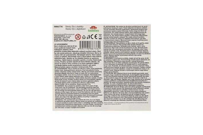 Každá malá parádnice musí mít ve své sbírce tuto sadu krásy s fénem a se spoustou doplňků. Sada je vhodná pro malé kadeřnice, mohou si tak učesat a vyparádit panenku dle své fantazie. Sada je vyrobena z kvalitního plastu. Sada obsahuje spoustu doplňků včetně fénu. Fén je na baterie. Baterie 3x AAA nejsou součástí balení.