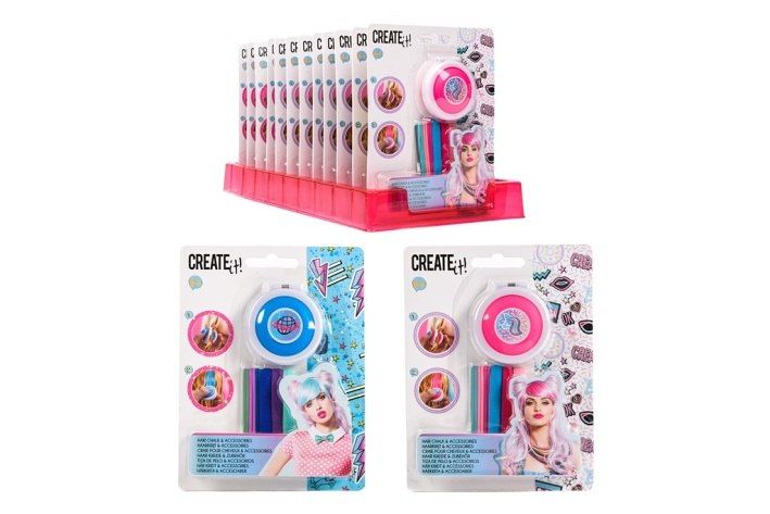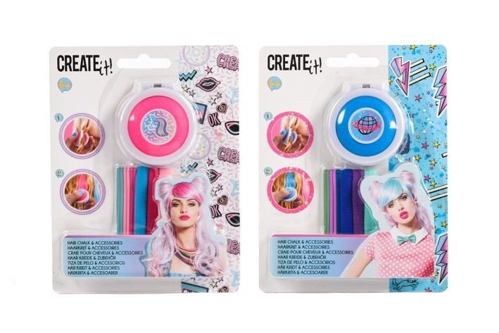 Sada Křídy na vlasy+ gumičky v barvách „Neon Galaxy“. Dvě různá barevná neonová provedení. Obsahuje křídy na vlasy, aplikátor a gumičky.