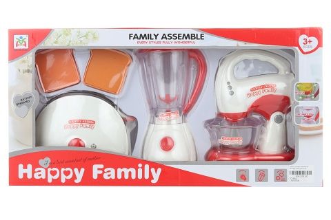Sada kuchyňských přístrojů. Balení obsahuje toustovač, mixér a šlehač. Napájení mixéru na 3 AA baterie a šlehače na 3 AA baterie (nejsou součástí balení). Rozměry balení cca 43,5 x 22 x 9,5 cm. Věk 3+