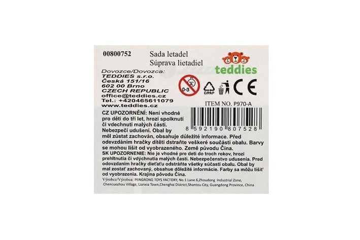 Sada letadel 5ks plast na volný chod v krabičce 23x15,5x4cm