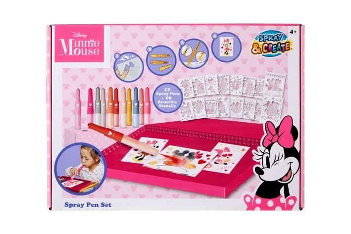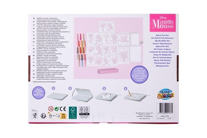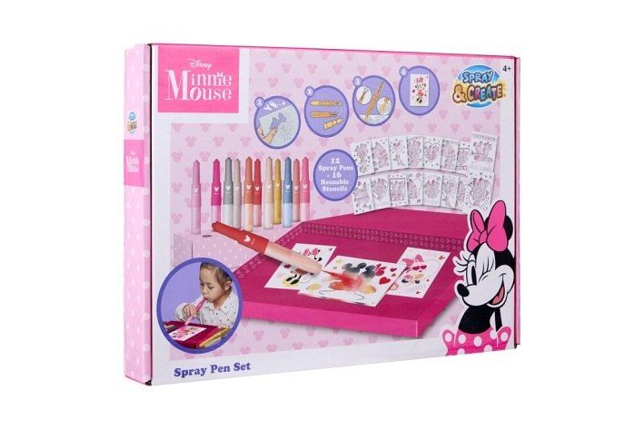 Sada malování se spray fixami Disney Minnie – sada obsahuje praktický papírový box, 12 spray fixů, 14 ks A5 šablon a 2 ks A4 šablony.
