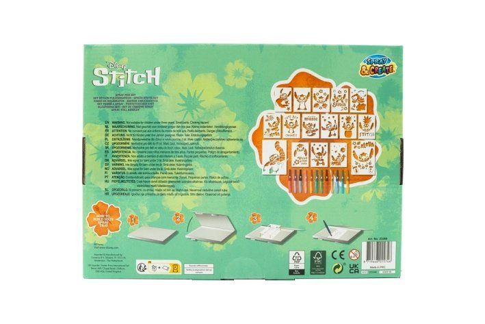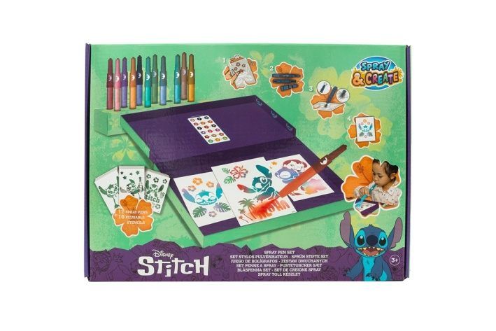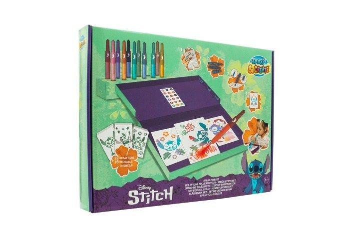 Sada malování se spray fixami Stitch – sada obsahuje praktický papírový box, 12 spray fixů, 14 ks A5 šablon a 2 ks A4 šablony.