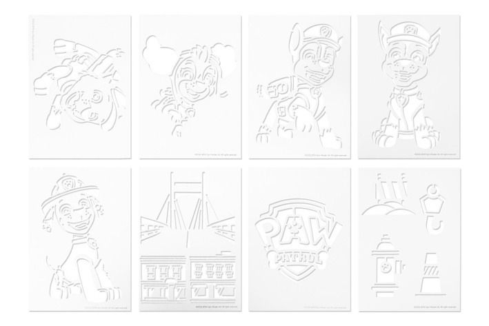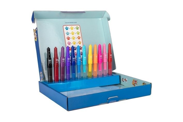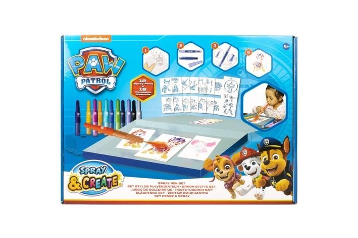 Sada malování se spray fixami Tlapková patrola – sada obsahuje praktický papírový box, 12 spray fixů, 14 ks A5 šablon a 2 ks A4 šablony.