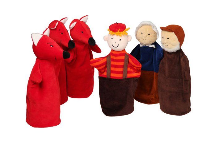 Sada O Budulínkovi obsahuje jednoduché maňásky s dlouhou rukavicí - Budulínka, babičku, dědečka, lišku a dvě liščata.