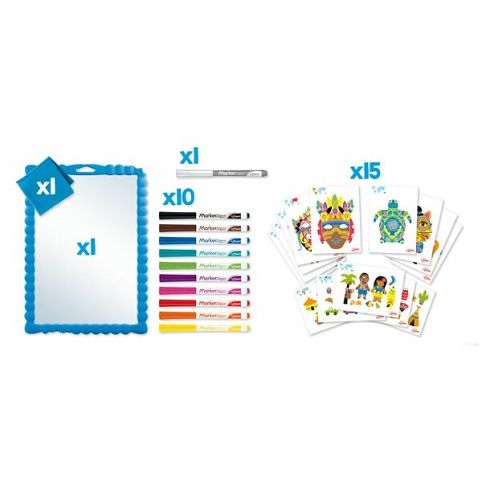 Souprava obsahuje 1 transparentní tabulku, 10 barevných fixů Marker‚s Peps, 1 mazací fixu Marker‚s Peps, 15 různých obrázkových předloh a hadřík. Fixy se dají z vymalovaných předloh snadno smazat a malovat lze opakovaně znovu.Vhodné pro děti od 6 let.