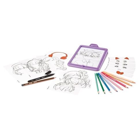 Kreativní sadaMaped Creativ Avatar tablet Manga obsahuje podsvětlenou kreslicí podložku, která umožňuje vytváření a kreslení vlastních manga portrétů. Tablet můžete snadno nosit s sebou. Vybírejte, sestavujte a kreslete originální avatary inspirované stylem manga. Staňte se skutečnými ilustrátory. Vhodné pro děti od 7 let.