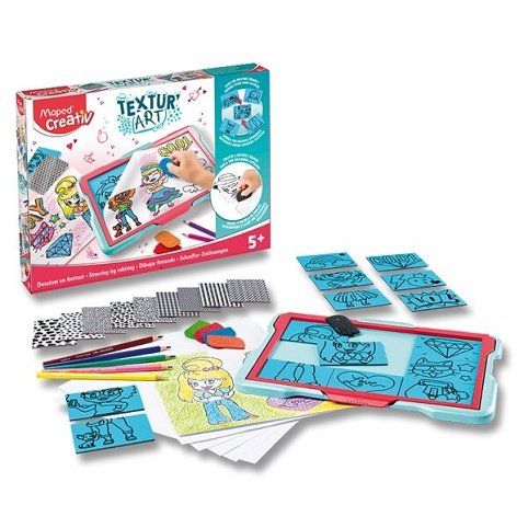 Kreativní sada Maped Creativ Textur‚Art Fashion funguje jako zábavná a originální desková základna. Spousta možných kombinací pro tvorbu s fantazií. Neomezené možnosti pro sestavení samotného obrázku a následného vybarvení. Módní motivy jako základní téma pro další zpracování vlastní představivosti. Pomocí šablon lze vytvořit originální umělecké dílo. Vhodné pro děti od 5 let.