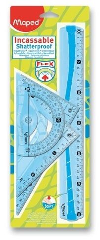 4dílná sada ohebných a nezlomitelných rýsovacích potřeb obsahuje: