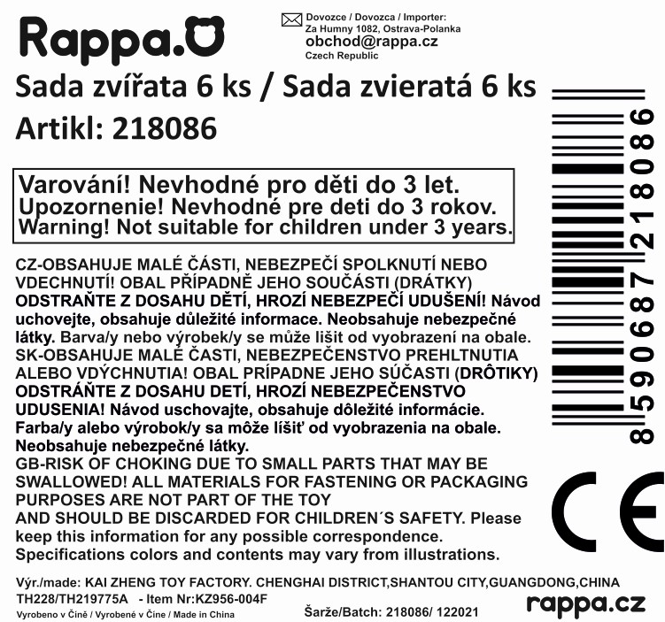 Mořská zvířata v sadě po 6 ks. Jsou vyrobena z kvalitní, tvrdé gumy. Velikost zvířátka cca 4-9 cm.