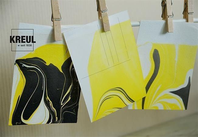 Pro jednobarevné mramorování použijeme kombinaci bezbarvé barvy a žádané barvy