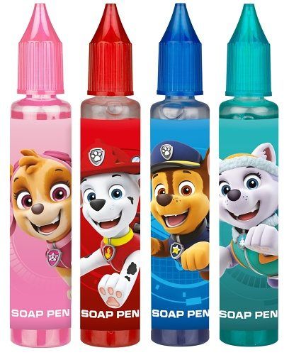 Sada mýdlových pastelek na tělo do vany (ve čtyřech barvách modrá, zelená, červená a růžová). S mýdlovými pastelkami Tlapková patrolaí se stává koupání zábavným zážitkem a vana se změnila v malířské studio. Děti si mohou pastelkami pokreslit celé tělo a pak jednoduše umýt vodou.Součástí balení je také malý ručník s obrázky hrdinů Tlapková patrola. Dermatologicky testováno, vyhovuje přísným normám EU. Zdravotně nezávadné.