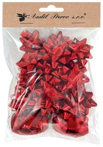 Sada na balení dárků červená, rozeta 5 x 2 x 5 cm 20 ks, stuha 0,5 cm x 10 m 2 ks