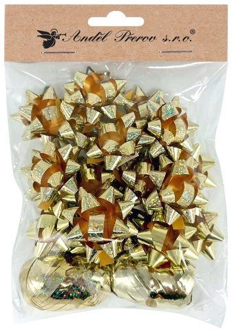 Sada na balení dárků zlatá, rozeta 5 x 2 x 5 cm 20 ks, stuha 0,5 cm x 10 m 2 ks