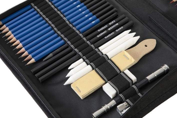 Sada na malování a skicování – obsahuje 96 ks potřeb pro malování a skicování (pastelky, tužky, ořezávátko, vyškrabávátko atd.) v praktickém balení na zip.