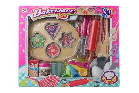 Kuchyňská sada nádobí na pečení. Balení obsahuje metlu, váleček, sušenky, 2 plechy a mnoho dalších doplňků. Celkem je v balení 30 kusů. Rozměry balení cca 38 x 30,5 x 5 cm. Věk 2+
