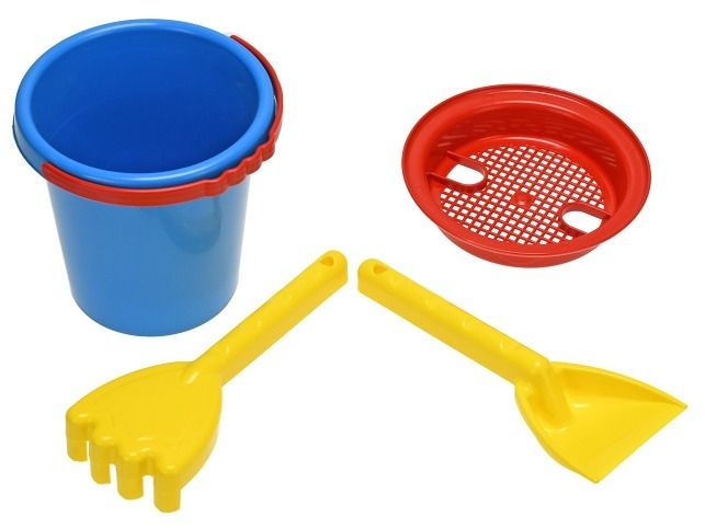 Sada na písek je určená pro všechny malé rošťáky, kteří se rádi hrají na pískovišti. Sada obsahuje sítko, lopatku, hrabičky a kbelík. Pro děti od 10 měsíců.