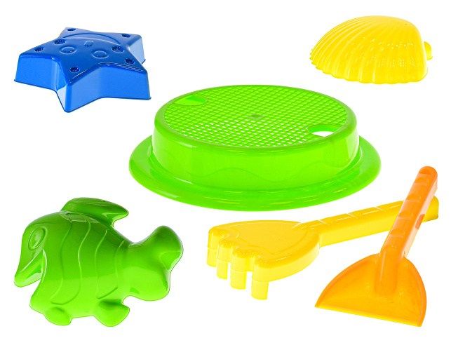 Sada na písek je určená pro všechny malé rošťáky, kteří se rádi hrají na pískovišti. Sada na písek obsahuje sítko, lopatku, hrabičky a 3 ks formiček o velikosti 10-11 cm. Pro děti již od 10 měsíců.