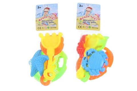 Sada na písek obsahuje sítko, lopatku, hrabičky a dvě bábovičky. Baleno v síťce. Rozměr balení cca 18 x 13 x 6 cm. Věk 3+