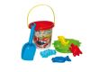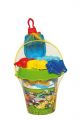 Sada na písek 7ks plast kbelík, sítko, lopatka, 4 formičky 3 barvy v síťce 18m+