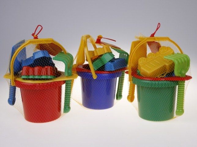 Sada na písek – kyblík, sítko, lopatka, hrabičky, 3 bábovky.