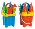 Velká sada na písek Hrad. Sada obsahuje kyblík ve tvaru hradní věže, hrabičky, lopatku, sítko, bábovky a konvičku. Různé barevné varianty, cena za jednu sadu. Velká sada na písek Hrad. Sada obsahuje kyblík ve tvaru hradní věže, hrabičky, lopatku, sítko, bábovky a konvičku.